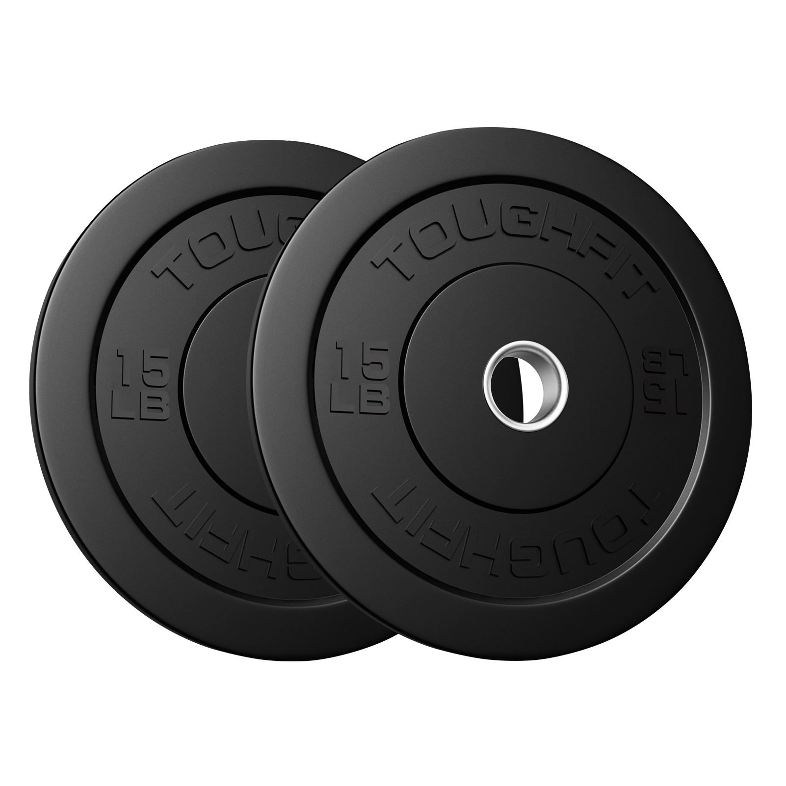 Durable and Low-Bounce- ToughFit bumper plates offer high durability due to their thick rubber coating and solid steel hubs. They provide a snug fit on the bar and minimal bounce when dropped.